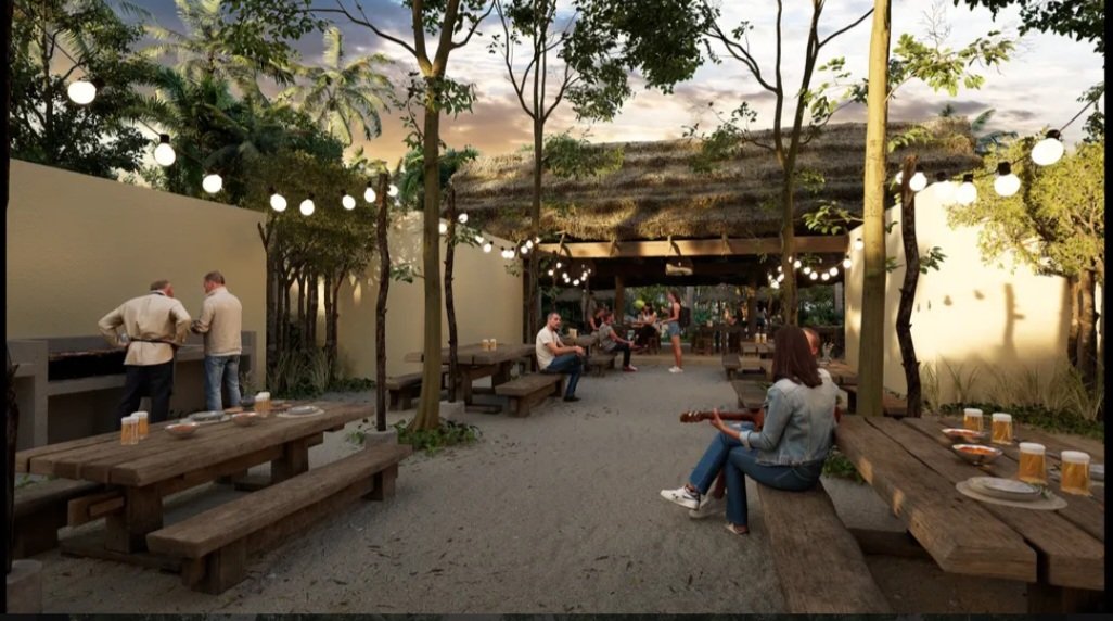Jardín de eventos, Circuito de bicicletas, Casa Club, Jardín Zen, Plataforma de Yoga y Taichi, Piscinas, Parques infantiles, Slackline, Jungle Gym, Laberinto, Parques aventureros, Tirolesa, Línea de bolos, Circuito Warrior, Cine al aire libre, Canchas deportivas, Hamacario, Rapel, Bar al aire libre, Caminos Colgantes Temazcal, Golfito, Horno de Pizza, Casa del árbol, Área de asadores, Cenotes, Recorrido escultórico, Juegos de mesa gigantes.