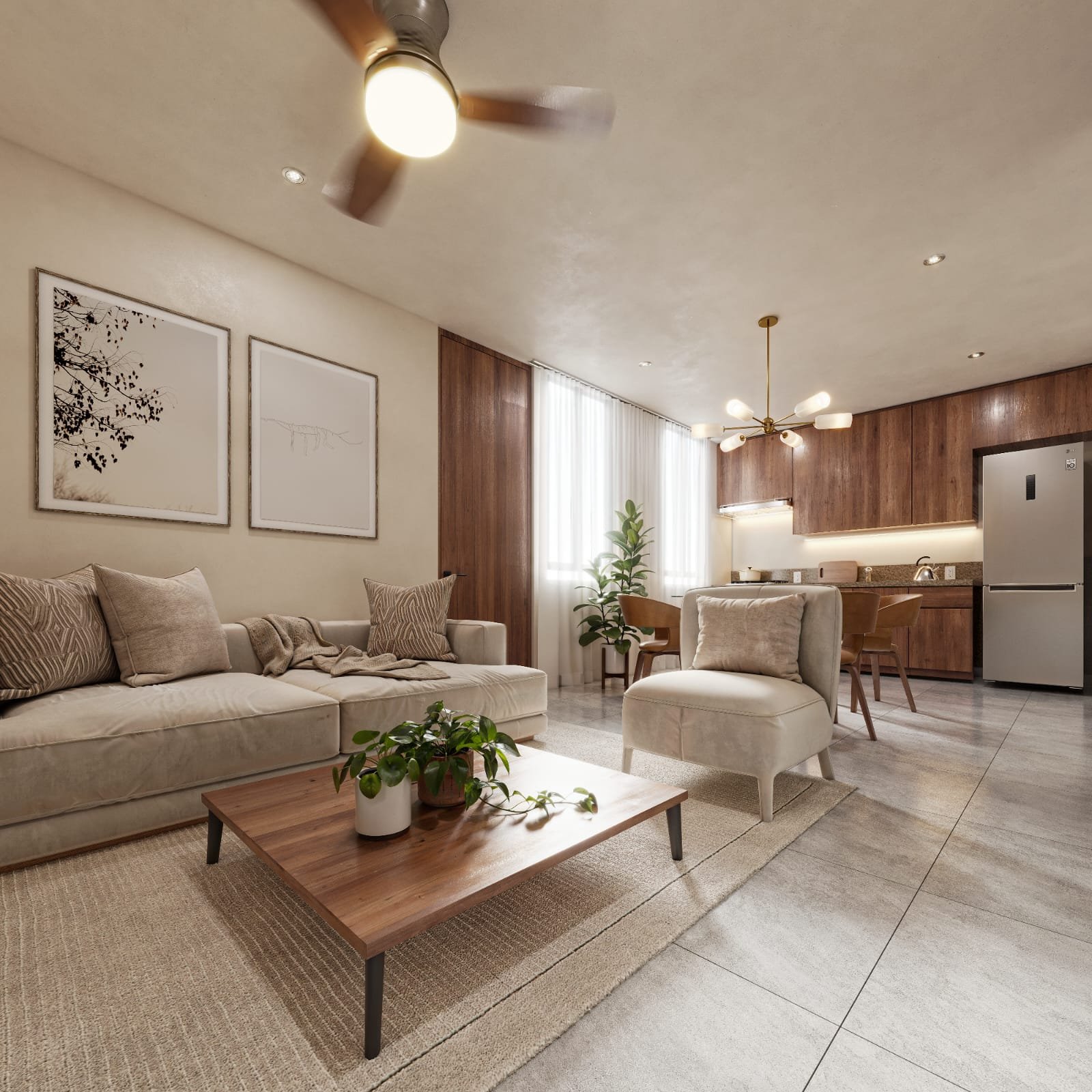 Sala, comedor y cocina
