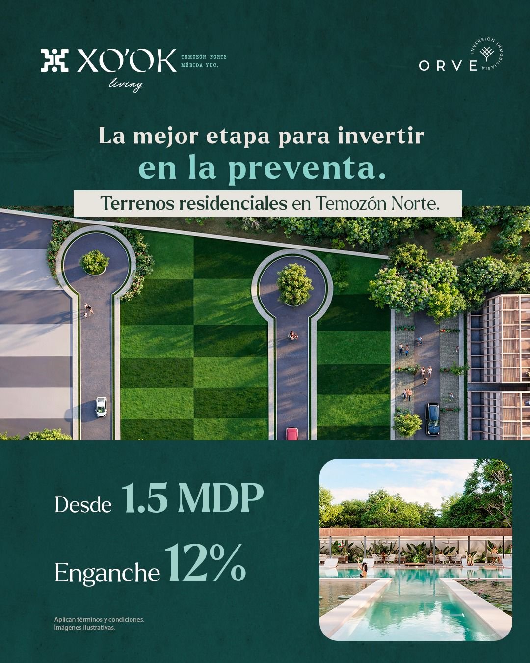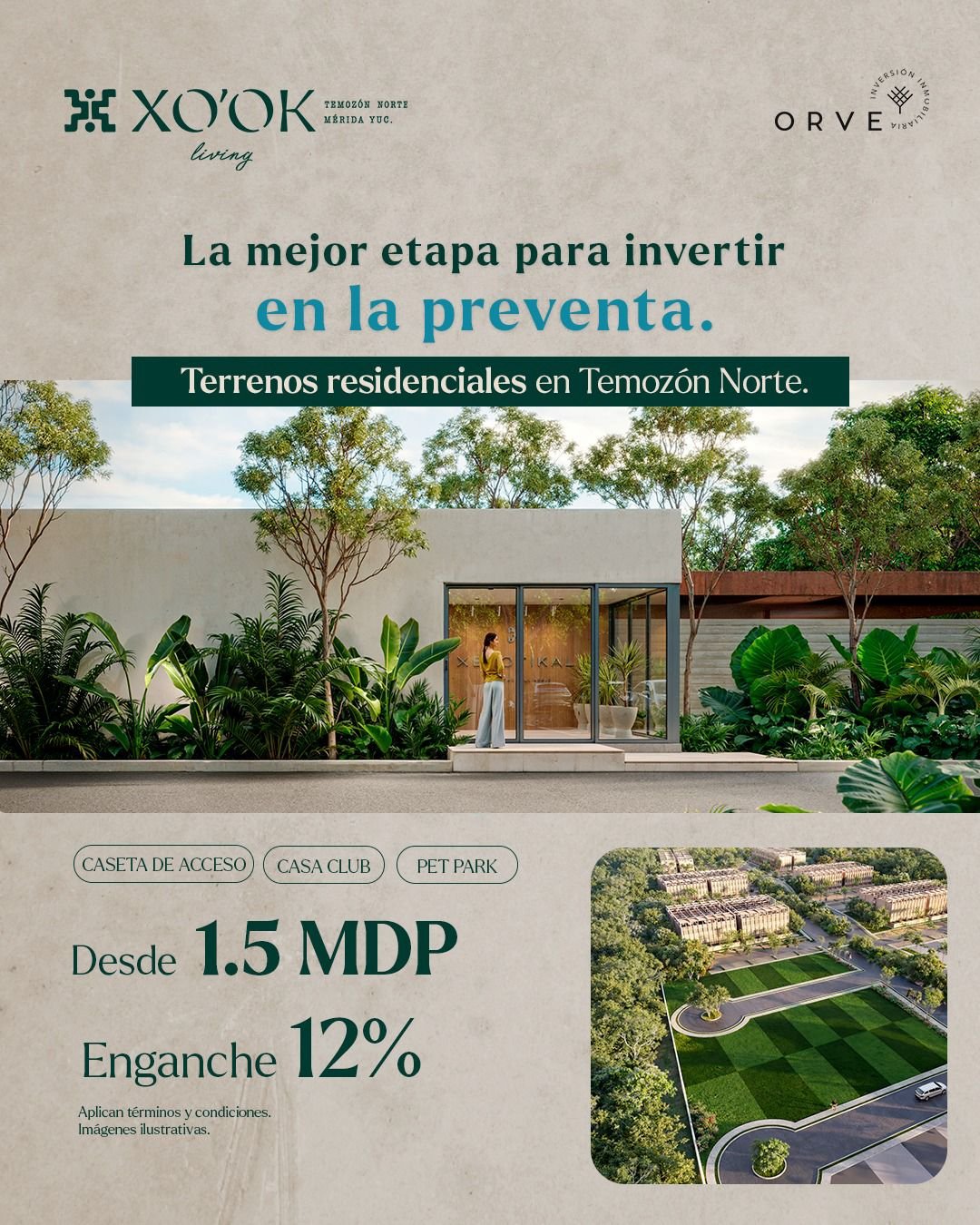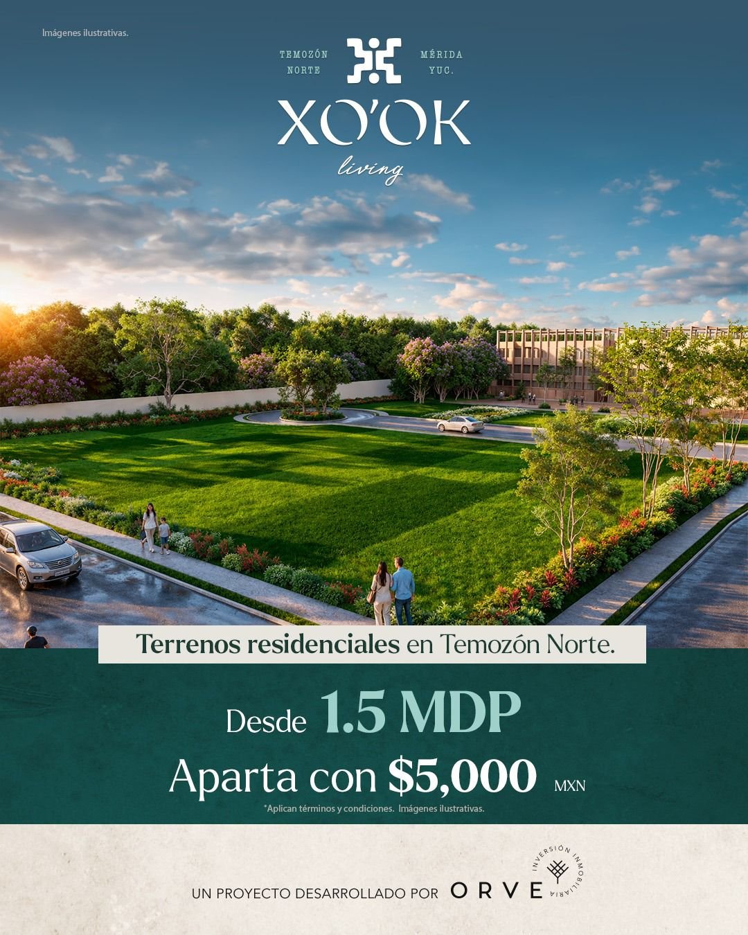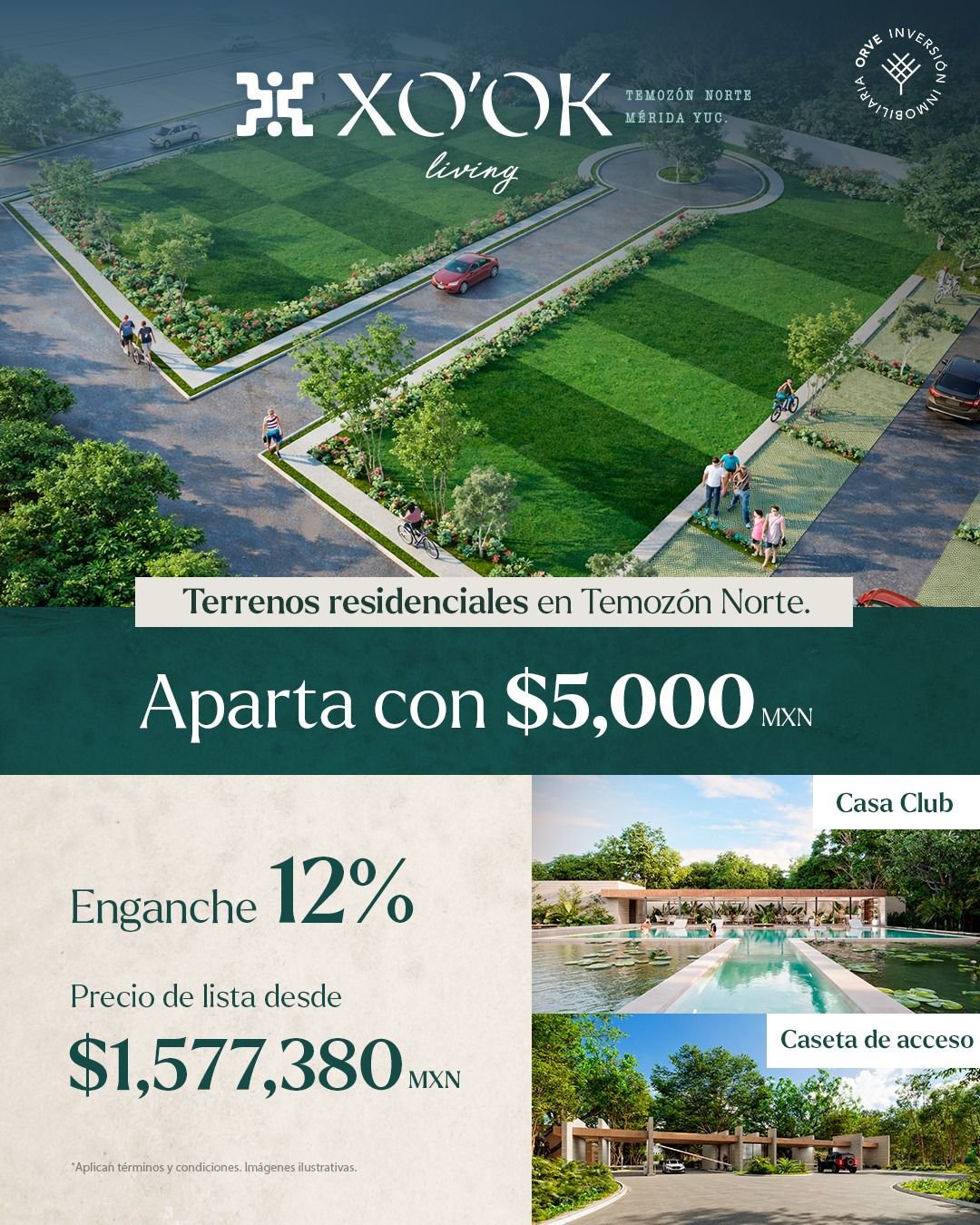 Descubre XO’OK Residencial, un exclusivo desarrollo de terrenos en venta ubicado en Temozón Norte, Mérida, Yucatán, una de las zonas con mayor crecimiento, plusvalía y demanda inmobiliaria en el sureste de México.