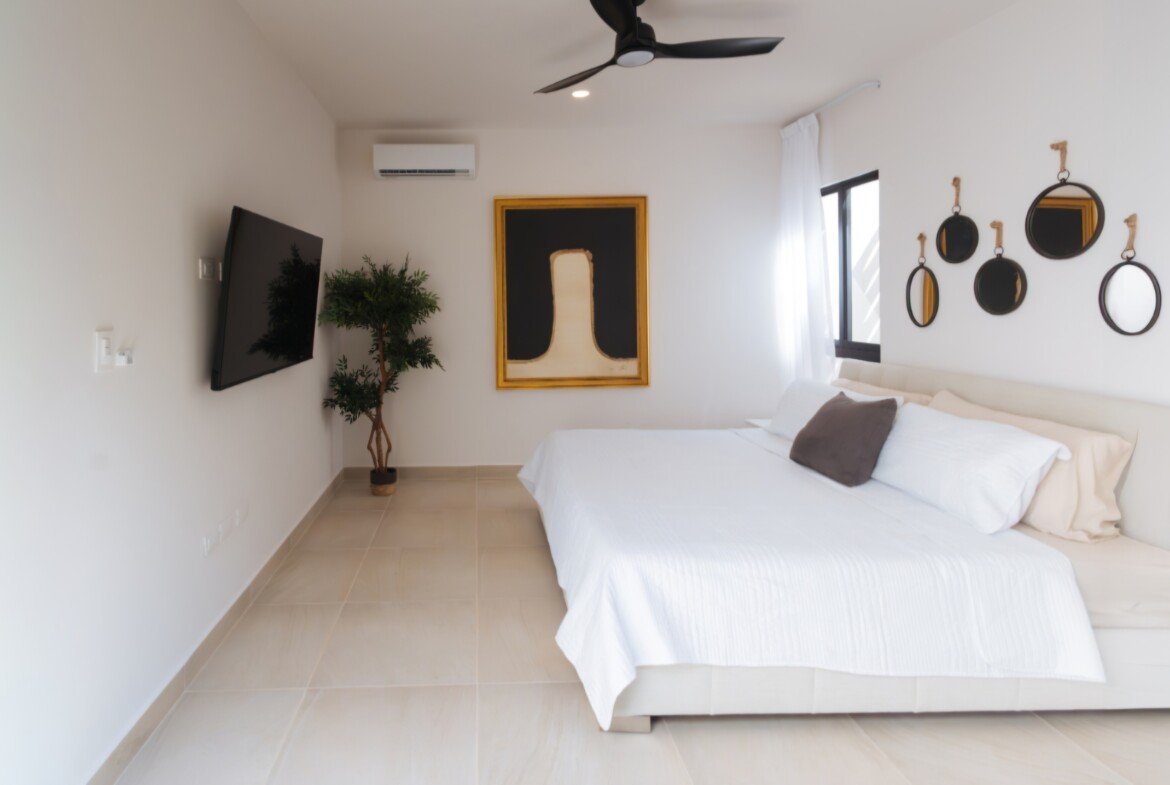 Recámara principal con clóset vestidor, baño y terraza privada